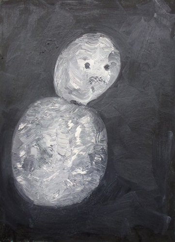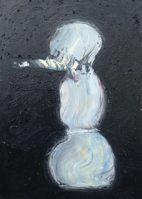Claude Gigons work in various media is about basic material and psychological states that are often expressed as contrasts: compression and dissolution, attraction and repulsion, isolation and interconnection. His series of snowmen takes the abstraction of the human figure reduced to one or two circular shapes as its starting point, and examines moments of transformation: transient figures and substances subject to material change. The modelling of colour and brushstrokes gives these paintings an almost sculptural appearance; forms are separated, compressed or dissolved. Flux and solidity are both equally important to the balance of the image. The artists guiding theme is materiality, but always in relation to the human figure and the psychological dimension of what it means to be human, and frequently with a portion of irony.
